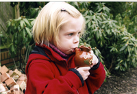 Habt Ihr schon den Text „Über das Projekt“ gelesen? Dort erzähle ich, wie ich auf die Idee kam, ein Ausstellungsprojekt über Keramik zu machen und daß mir schon als kleines Mädchen Keramik gefallen hat – besonders die Figur einer Taube. Sie kostete damals nur 40 Deutsche Mark, aber das wäre mein Taschengeld für zwei Jahre gewesen. Das erlaubten meine Eltern nicht und ich durfte die Taube nicht kaufen, aber ich vermisse sie bis heute. Damit es Euch nicht auch so geht, bat ich einige Töpfer, hübsche kleine Keramiken herzustellen, die Ihr – als Erinnerung an „Ton-Spuren“ - an der Museumskasse von Eurem Taschengeld kaufen könnt. Wie gefällt Euch zum Beispiel die Tonpfeife, mit der Mara wie eine Nachtigall zwitschert? | ![]() | |